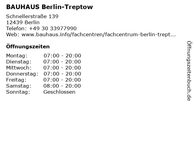 Bauhaus baumarkt berlin öffnungszeiten. Bauhaus fachcentrum mit online shop. Rufen sie uns auch an 49 30 755156 0. Die bauhaus fachcentren sind für sie wie folgt geöffnet. Hier finden sie eine übersicht aller bauhaus filialen in berlin.