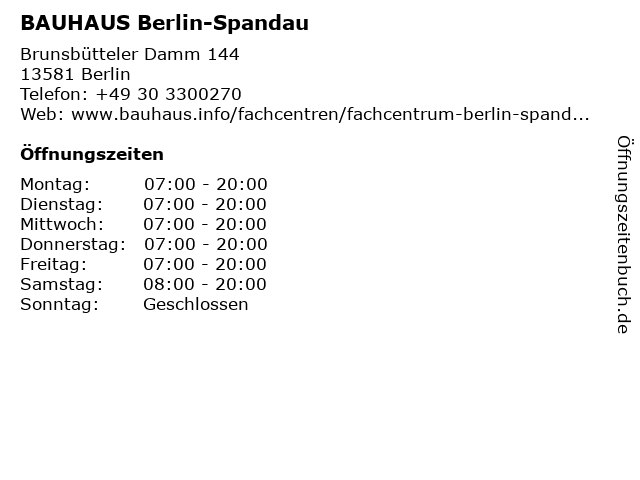Rufen sie uns auch an 49 30 5300599 0. Bauhaus brunsbütteler damm. Das bauhaus fachcentrum in berlin spandau bietet heimwerkern und gärtnern in den abteilungen bäderwelt gartencenter uvm. Ein breites fachsortiment für hobby und beruf.